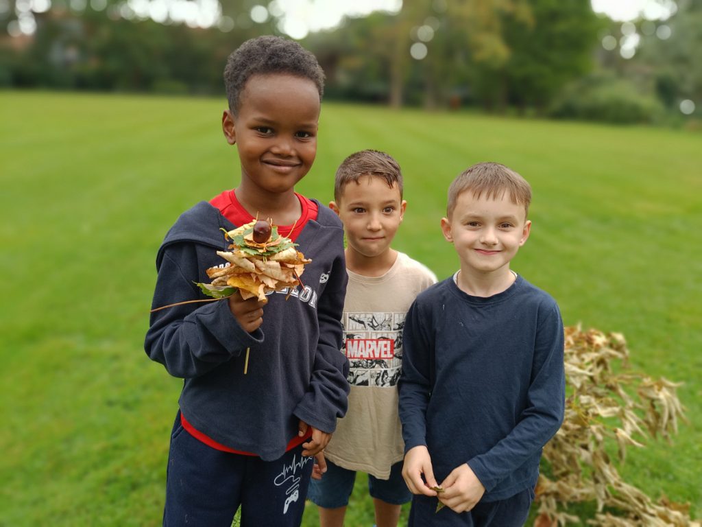 We gingen met de 2 klassen op stap. Zo leerden we elkaar met spelletjes beter kennen: fotograaf, piramide maken, olifantenpas, rups maken met herfstbladeren,….
