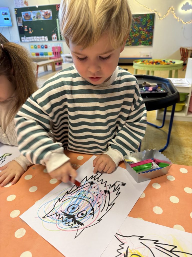 Het kleurenmonster voelt zich wat in de war. We helpen hem om alles op een rijtje te zetten. Tijdens het thema leren we de basisgevoelen blij- bang- boos- verdrietig te herkennen en benoemen. Belangrijk is de emotionele ontwikkeling.