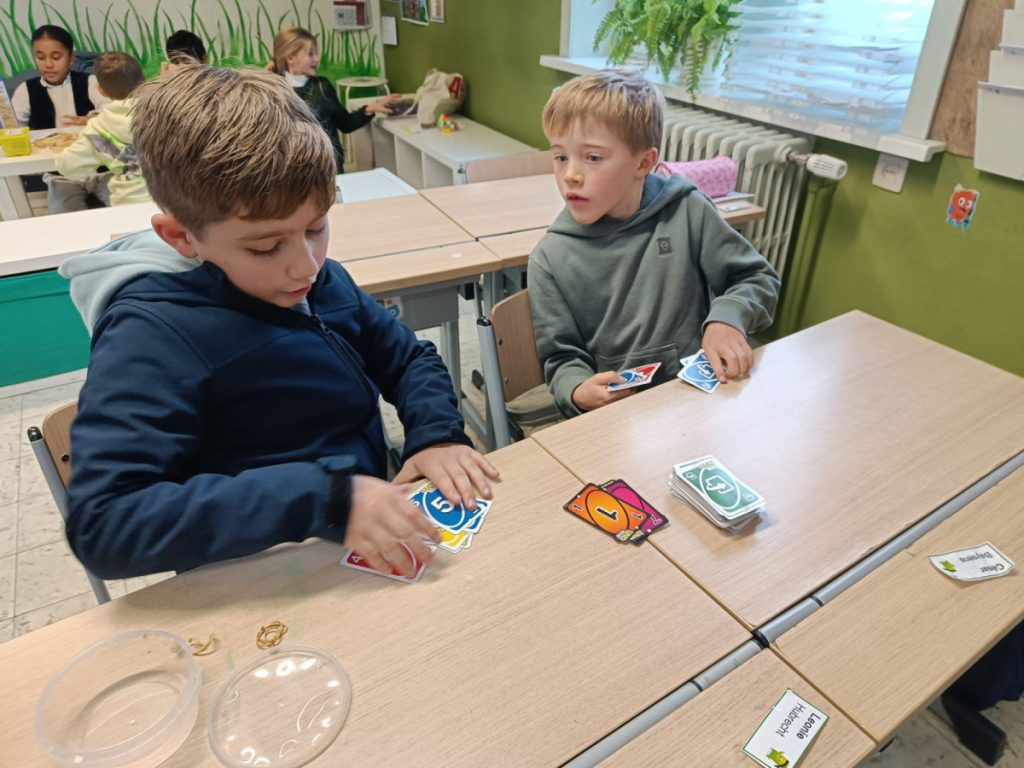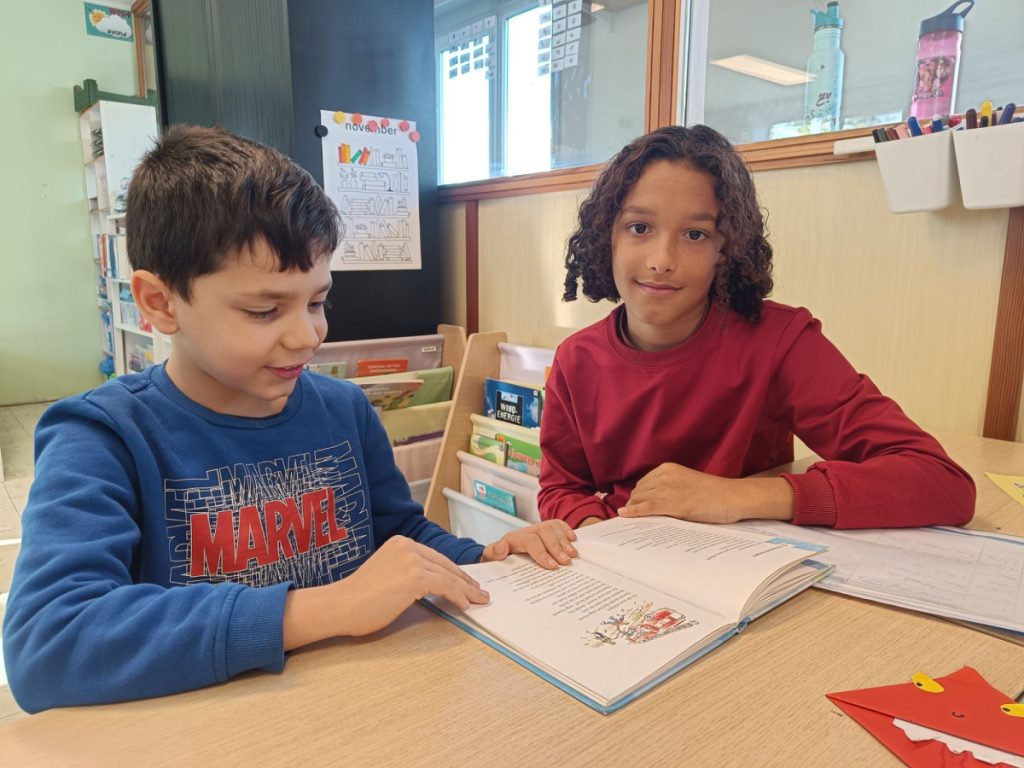 TandemlezenDoor Nele Demuynck / 4 december 2025 Met L2 en L5 hebben we samen gelezen. Afsluiten deden we met spelletjes spelen.